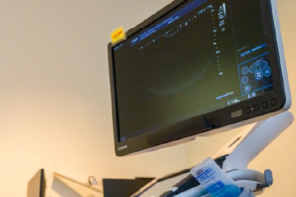 Canon Aplio300とHITACHI ARIETTA65の2台で行っています。いずれも新しい装置です。肝臓や膵臓、胆嚢、腎臓等の腹部臓器、乳腺、甲状腺等の検査をおこなっています。乳腺の超音波は、女性医師もしくは女性の放射線技師がおこないます。乳がん検診超音波検査実施技師が2名います。